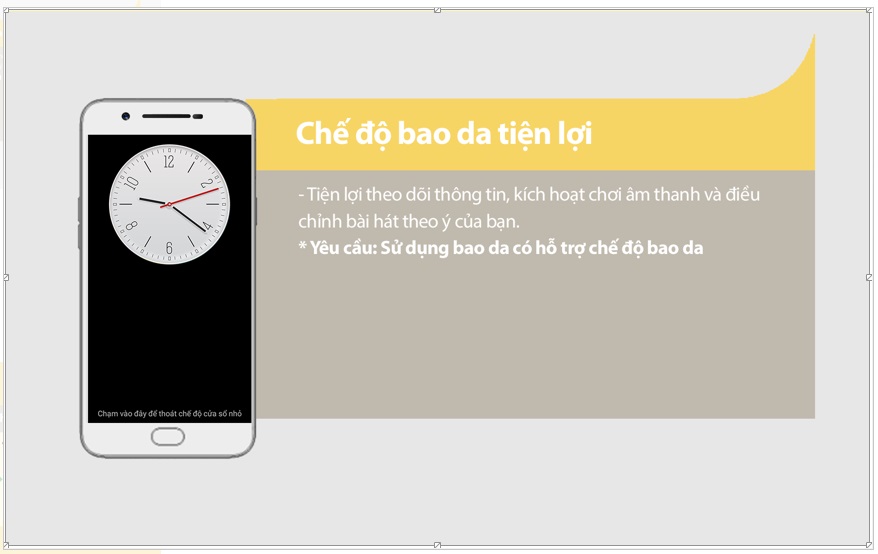 Với chế độ này, khi sử dụng bao da, bạn có thể theo dõi thông tin, kích hoạt chơi nhạc và điều chỉnh âm thanh nhanh chóng.