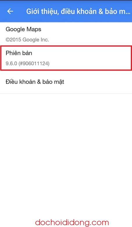 Để có thể kiểm tra phiên bản hiện tại của Google Maps các bạn vào apps maps-> chọn cài đặt-> “giới thiệu’’ để kiểm tra