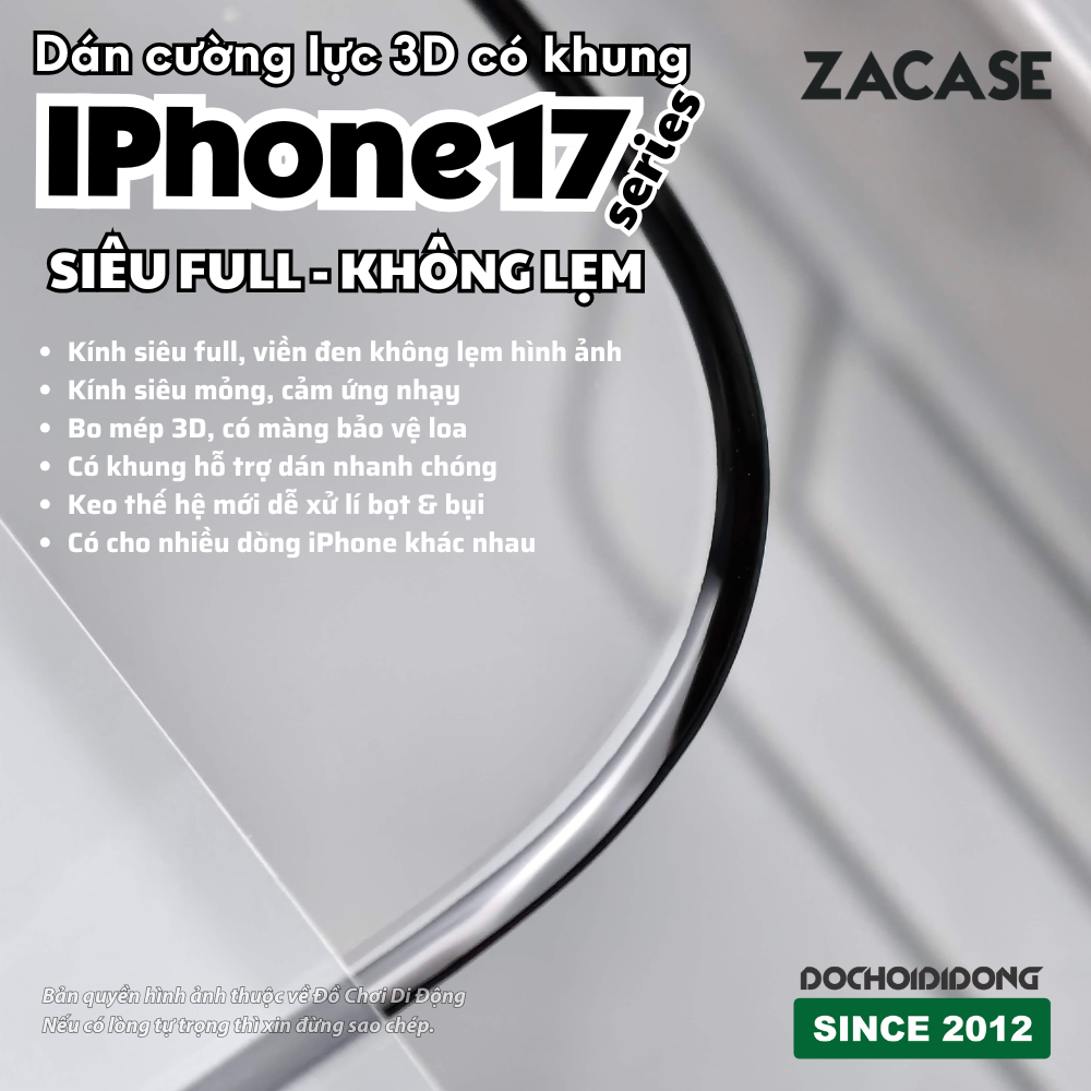 Bạn vừa sở hữu một trong những siêu phẩm iPhone 17 Series mới nhất và đang tìm kiếm giải pháp bảo vệ màn hình tối ưu mà không cần phải ra tiệm? Kính cường lực ZACASE 3D có khung trợ dán chính là câu trả lời hoàn hảo, mang đến trải nghiệm dán màn hình chuyên nghiệp ngay tại nhà và khả năng bảo vệ vượt trội.
