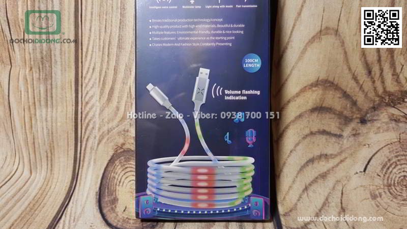 Là khi có âm thanh thì cáp sạc sẽ tự động chớp đèn theo nhịp tiếng động, tùy theo động lớn nhỏ, vang ngắn khác nhau.