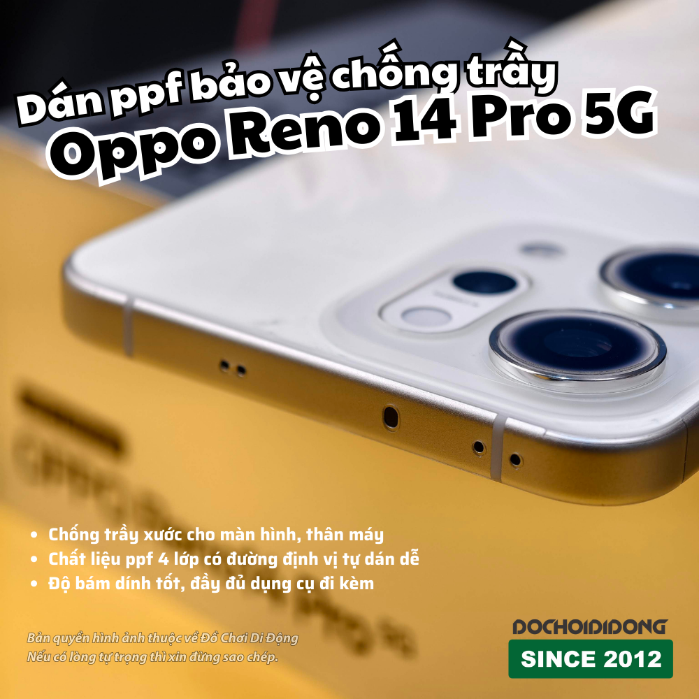 Bạn yêu thích thiết kế nguyên bản của dòng Oppo Reno 14 và ngần ngại sử dụng ốp lưng? Miếng dán PPF (Paint Protection Film) chính là giải pháp bảo vệ "tàng hình" hoàn hảo, giúp máy luôn như mới.