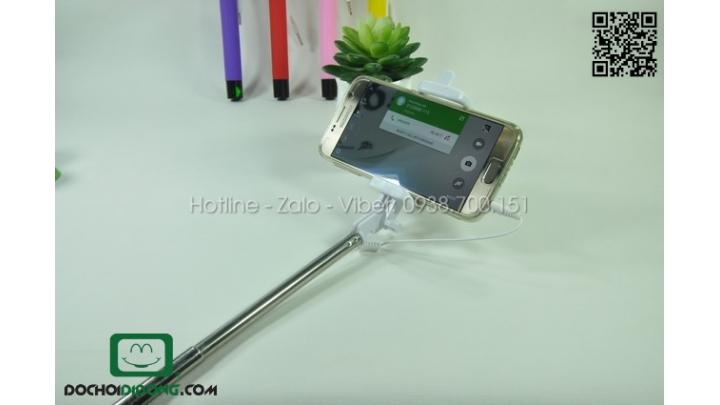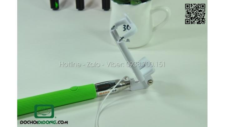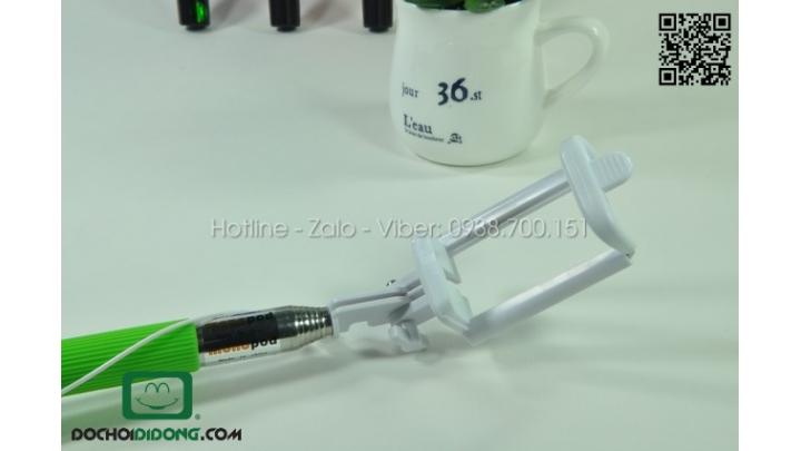 Để có thể chụp bạn phải bật camera điện thoại lên và kết với với sợi dây audio 3.5 có sẵn trên gậy. Và sau khi chọn được góc độ ưng ý, bấm nút trên thân gậy để chụp ảnh.