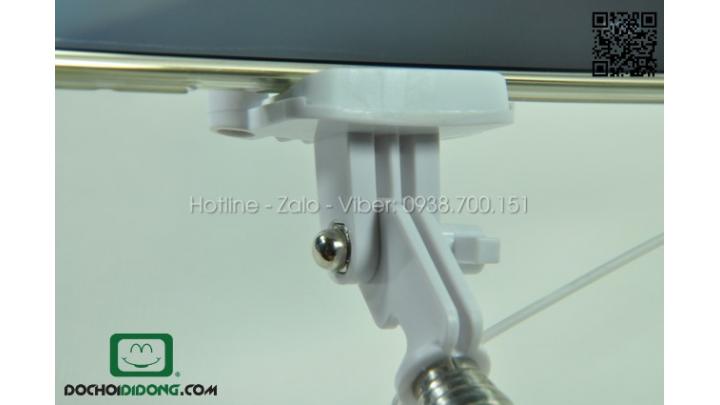 Để chụp bằng điện thoại di động với gậy tự sướng,trước tiên bạn phải gắn điện thoái với gậy một cách chắc chắn, giá đỡ của gậy được thiết kế bằng nhựa cao cấp nên khả năng đàn hồi cao, sẽ giữ chặt điện thoại trong quá trình chụp, bên dưới giá đỡ là một con ốc giúp bạn điều chỉnh góc độ của điện thoại