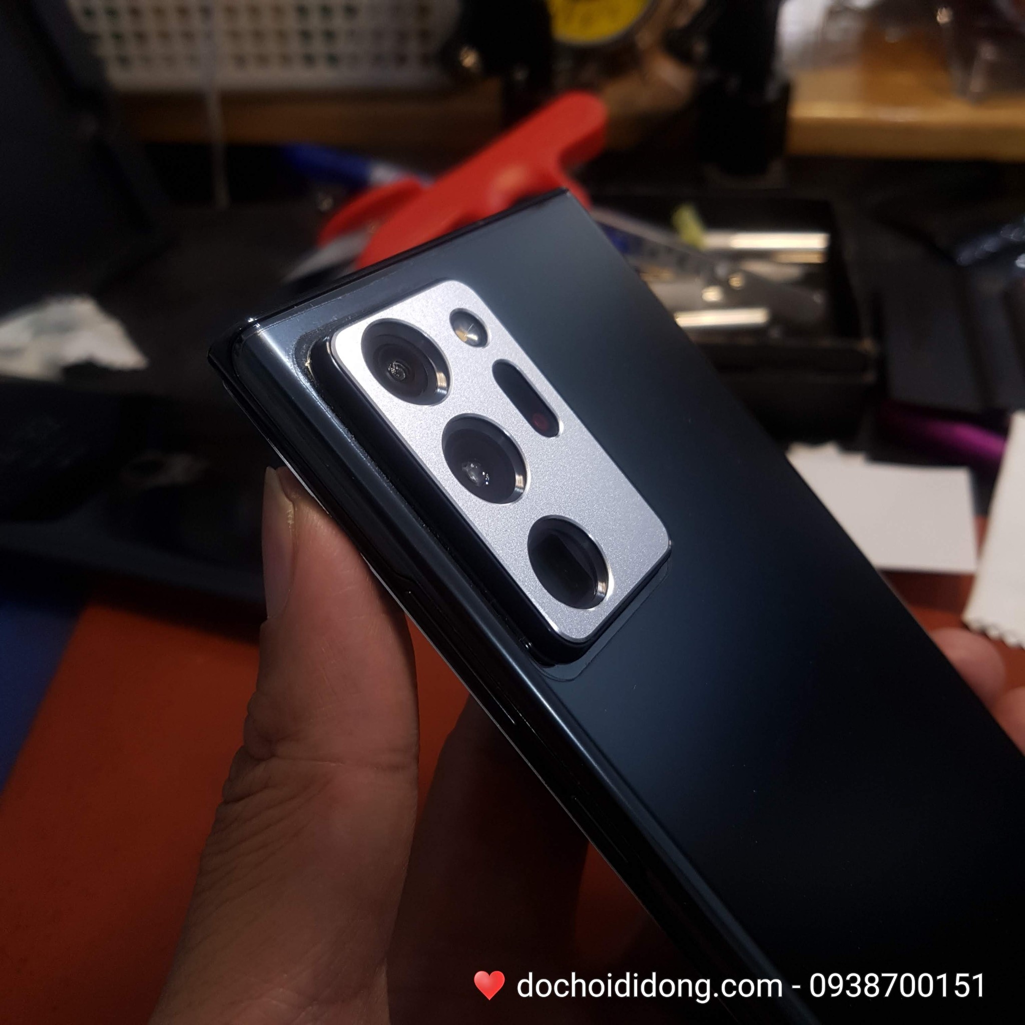 Camera nhôm Bạc được dán lên máy Note 20 Ultra đen tạo điểm nhấn độc đáo :