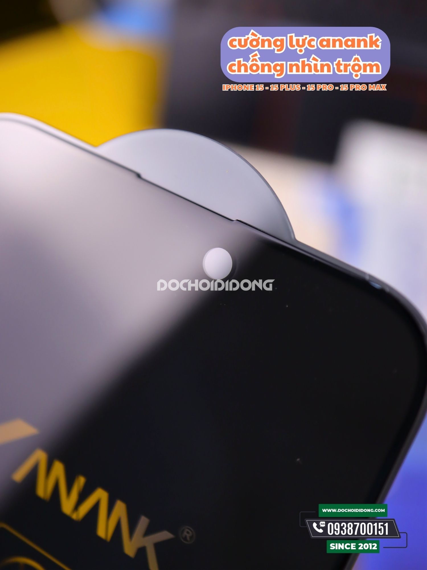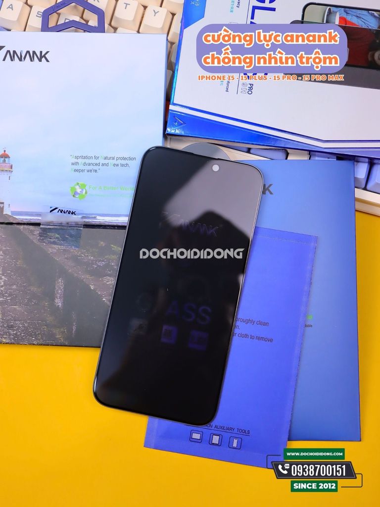 📸Thông tin sản phẩm Miếng dán cường lực chống nhìn trộm iPhone 15 15 Plus 15 Pro 15 Pro Max ANANK Privacy 2.5D 9H :