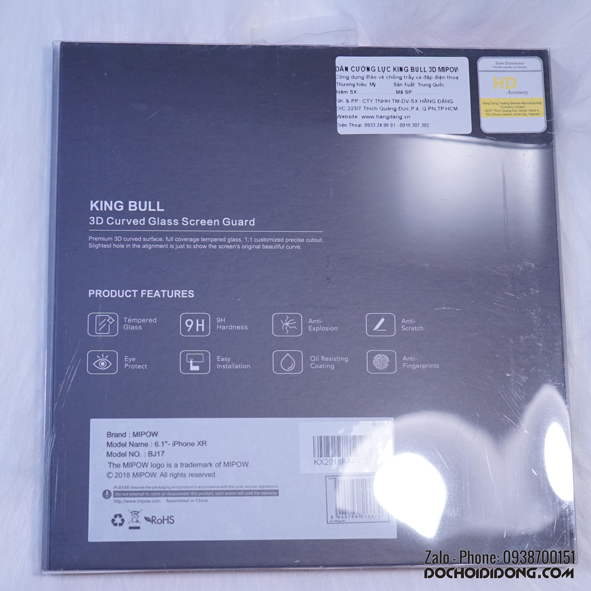 - Miếng dán cường lực iPhone XR MIPOW KING BULL 3D full màn hình được hỗ trợ dán tại shop khi mua.