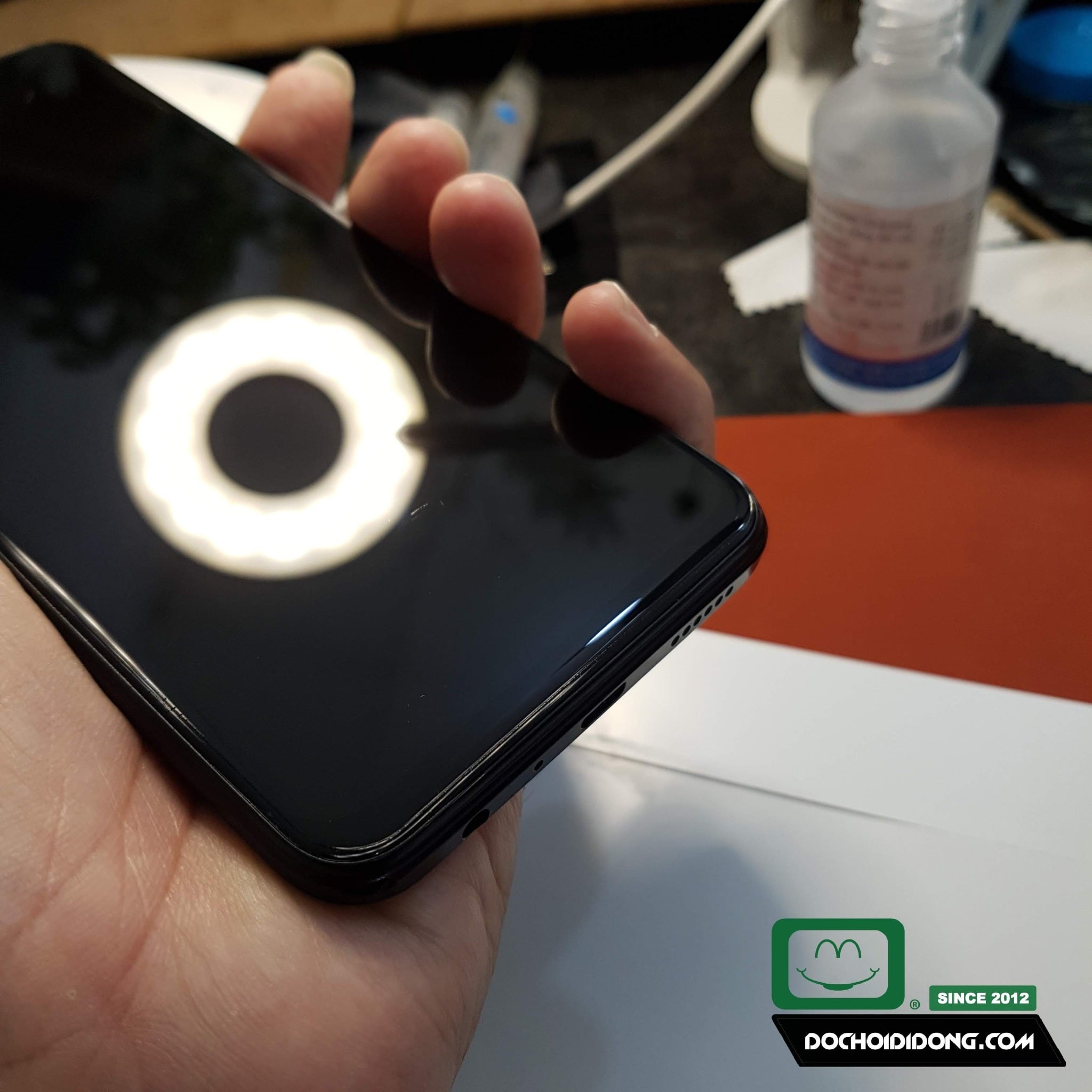 Thứ 2 với công thức riêng, nó sẽ hạn chế tối đa hiện tượng trắng mép ở khu vực rìa cong của màn hình, nếu bạn dán chuẩn, không bị cấn bụi, gần như không có hở trắng.