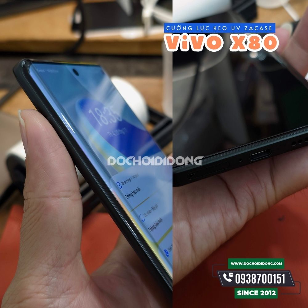 🍄 Miếng dán cường lực Vivo X70 Pro PLus / X80 / X80 Pro / iQOO 8 Pro / iQOO 9 Pro / X90 Pro Plus / iQOO 12 Pro Zacase keo UV cao cấp Zacase keo UV sử dụng thế hệ keo UV mới nhất, với chiết xuất chính từ nhựa thông, an toàn và thân thiện với môi trường. Keo sau khi được chiếu qua tia UV sẽ co lại ở dạng siêu mỏng dưới kính cường lực.