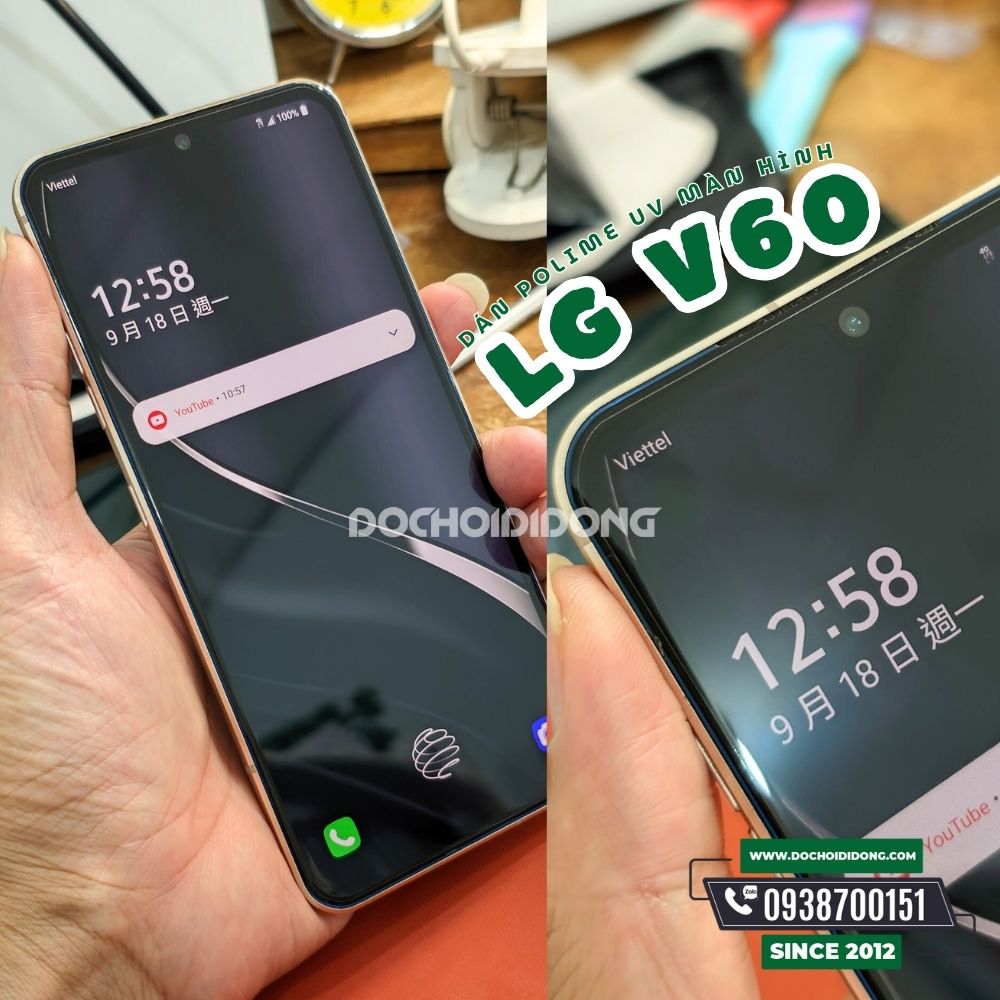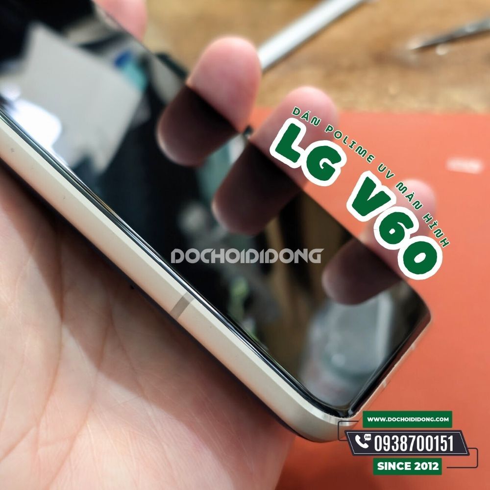 Cấu tạo của miếng dán màn hình polime sử dụng công nghệ chiếu tia uv trên LG V60 ThinQ.