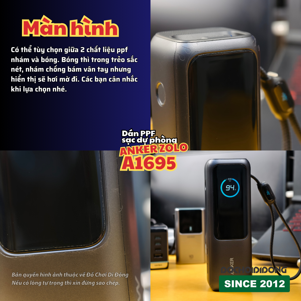 Miếng dán PPF chống trầy xước màn hình pin sạc dự phòng Anker Zolo 25000 165W - A1695 có những ưu điểm như sau: