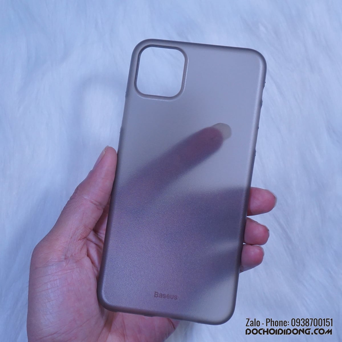 - Ốp lưng iPhone 11 Pro Max Baseus Wing siêu mỏng có màu trong nhám mờ, vẫn có thể thấy màu máy nhẹ nhàng phía sau lưng ốp.