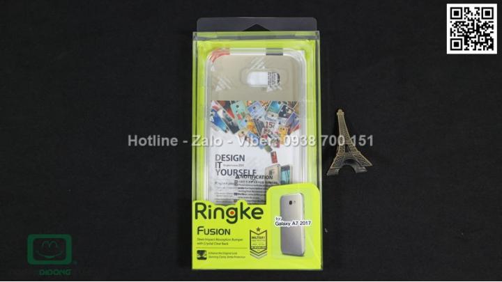 Ốp lưng Samsung Galaxy A7 2017 Ringke Fusion được làm từ nhựa cứng cao cấp chất lượng của Hàn Quốc, giúp máy được bảo vệ tốt trong quá trình sử dụng có làm rơi thì ốp sẽ bảo vệ an toàn nhất. Ốp lưng Samsung Galaxy A7 2017 Ringke Fusion có kích thước không quá dày cho cảm giác cầm nắm rất tốt. Phần mặt lưng của ốp được làm nhựa cứng còn phần viền xung quanh được làm dẻo giúp bạn tháo lắp dễ dàng hơn cũng như cho khả năng chống sốc tốt hơn. Ốp lưng Samsung Galaxy A7 2017 Ringke Fusion các phím bấm được làm nẩy cho cảm giác bấm tốt không gây khó chịu. Ốp lưng Samsung Galaxy A7 2017 Ringke Fusion sẽ bảo vệ cho máy bạn không bị móp méo viền hoẳc vỡ. Ngoài ra bạn cần mua thêm một miếng dán màn hình để bảo vệ được phần màn hình của bạn không bị trầy. Ốp lưng Samsung Galaxy A7 2017 Ringke Fusion có kiểu dáng như một chiếc ốp lưng bình thường như có khả năng chốc sốc và chống va đập cao giúp bạn yên tâm sử dụng máy mà không sợ bị rơi rớt