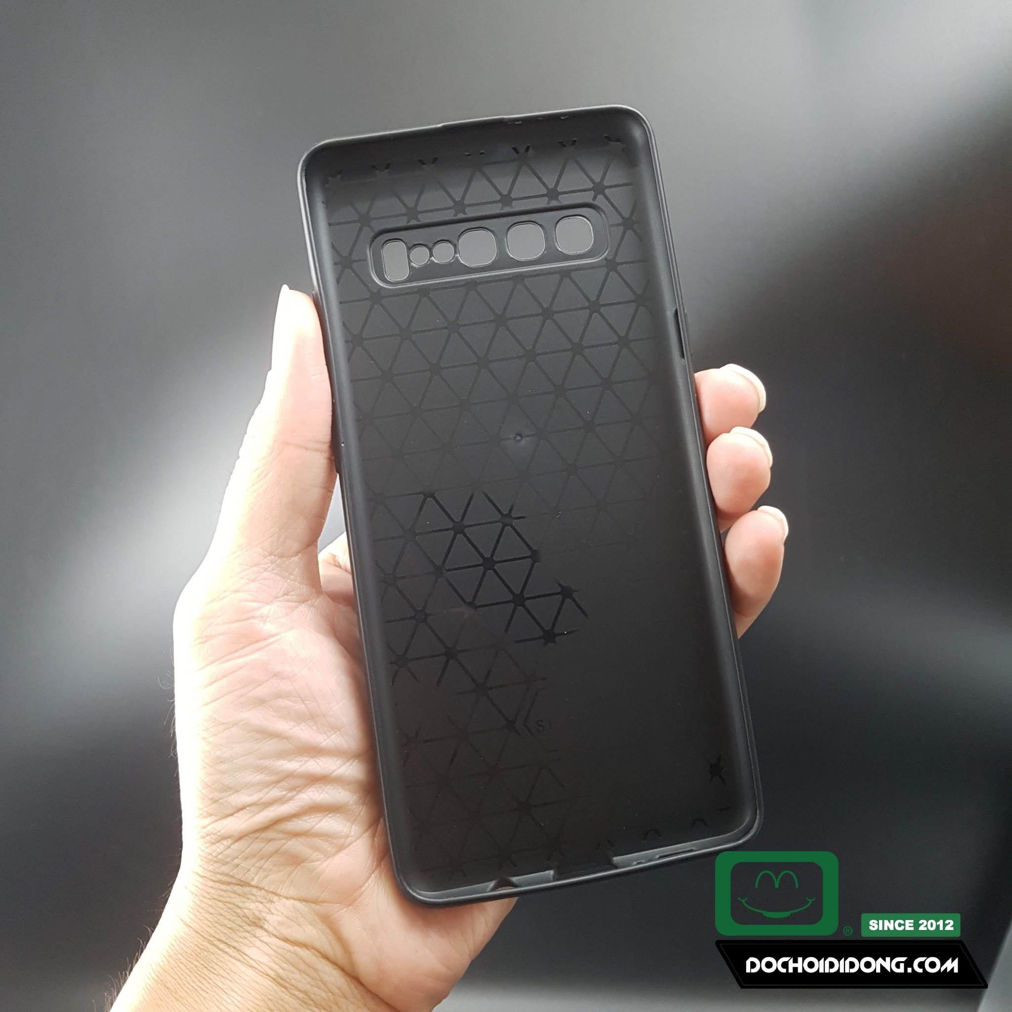 Phần camera được thiết kế nhô lên để giúp bảo vệ camera. Nếu kết hợp với cường lực camera cho Samsung S10 5G thì đúng là một bộ giáp hoàn hảo.